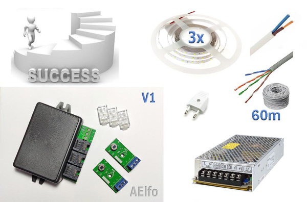 Kit-ul asigură iluminarea unei scări cu 15 trepte și include: